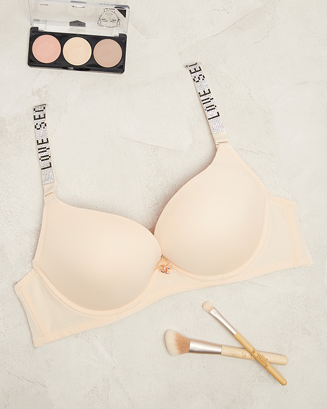 Bēšs vienkrāsains polsterēts krūšturis ar dekoratīvām lencītēm - Apakšveļa