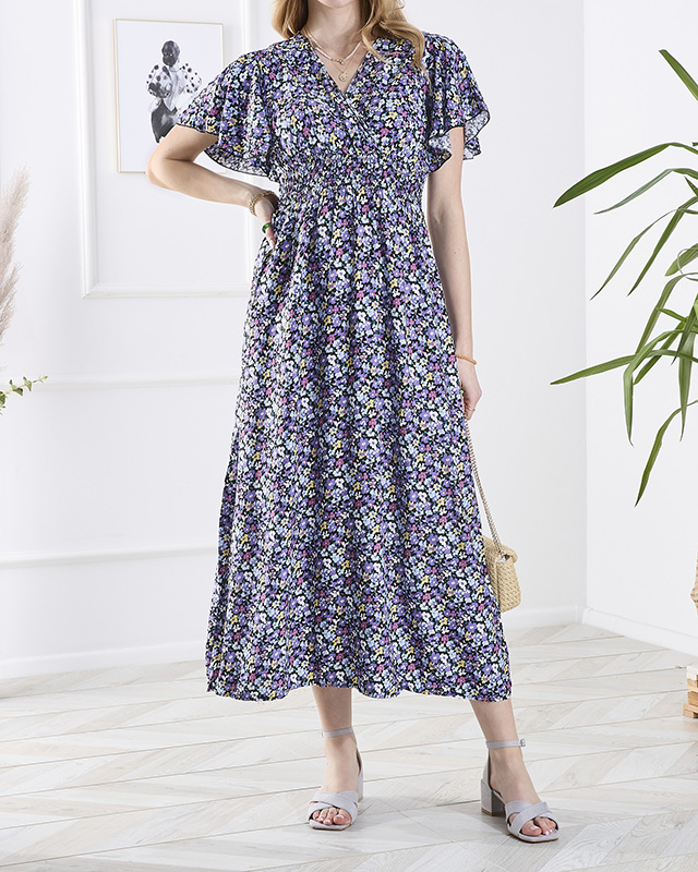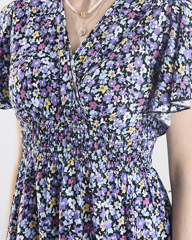 Sieviešu melna gara kleita ar violetiem ziediem - Apģērbs