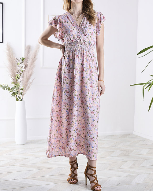 Rozā sieviešu puķaina midi kleita - Apģērbi