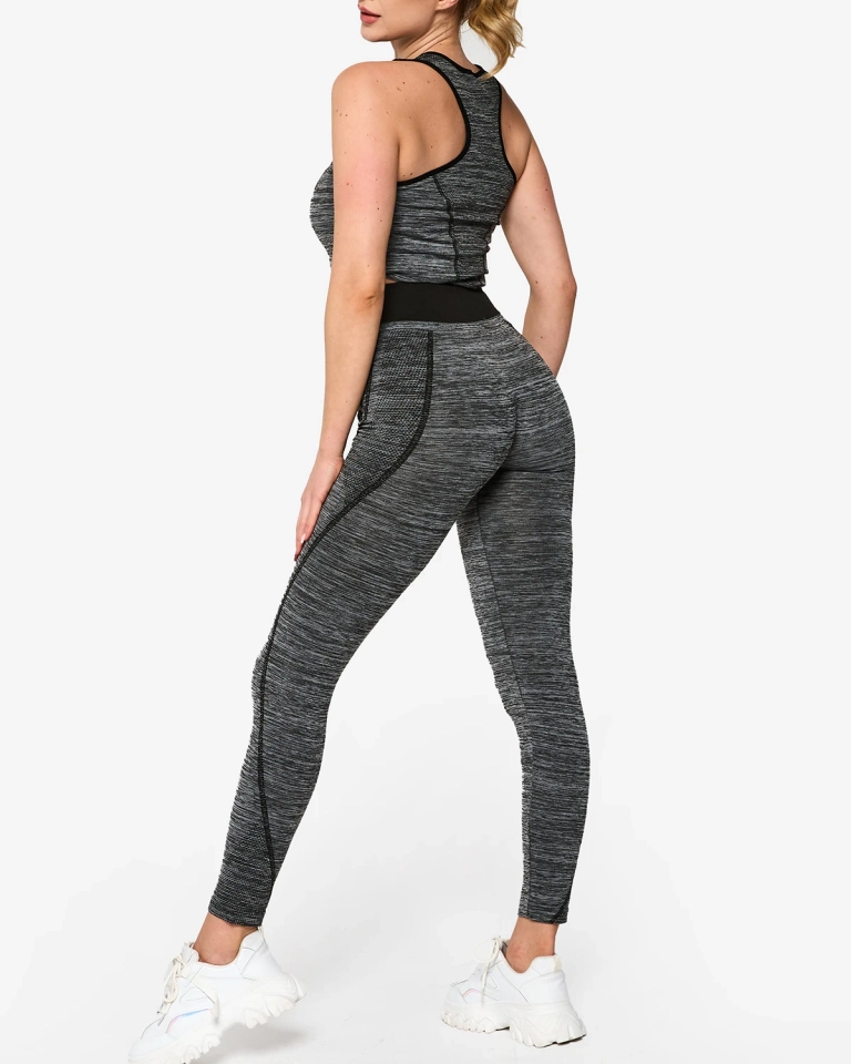 Pelēks sieviešu sporta komplekts ar melniem ielaidumiem - Apģērbi