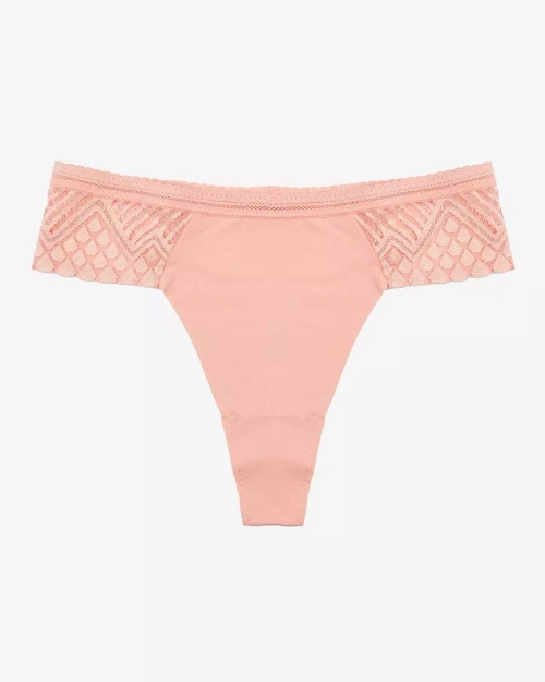 Koraļļu krāsas sieviešu stringi ar mežģīnēm - Apakšveļa