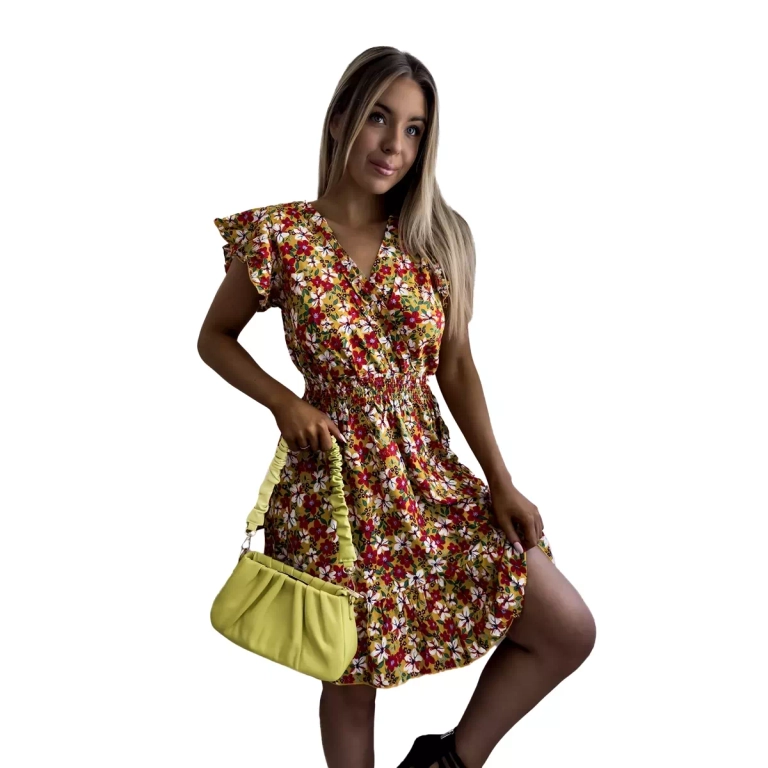 Dzeltena sieviešu mini kleita ar ziedu rakstu - Apģērbi