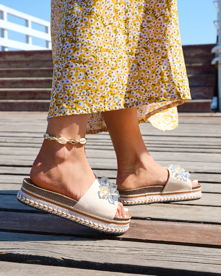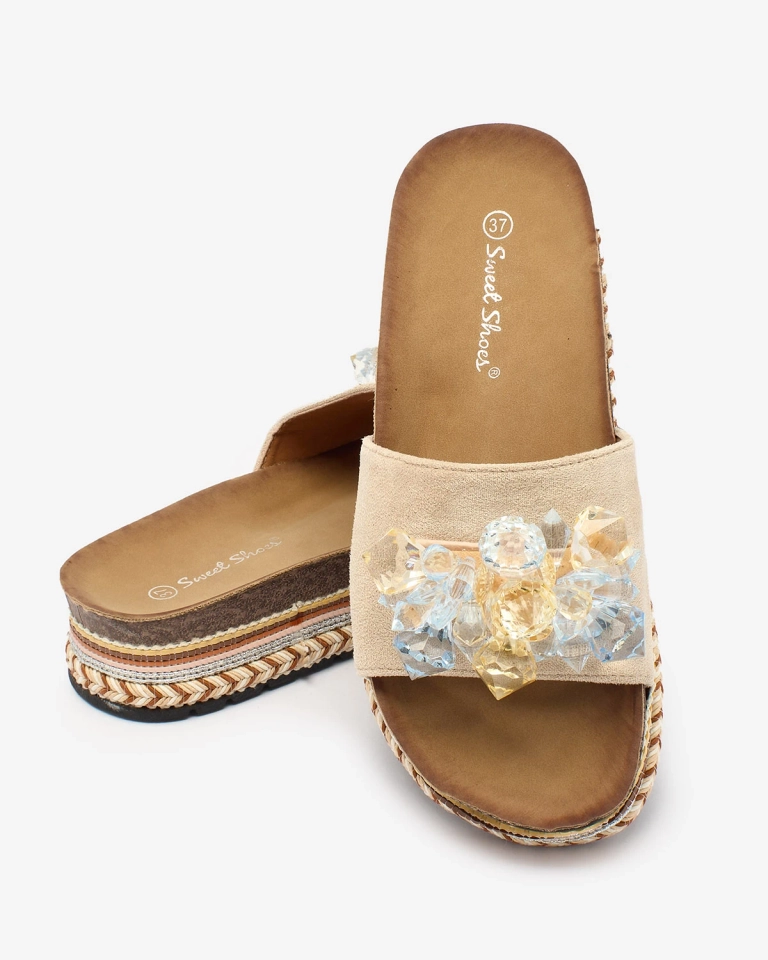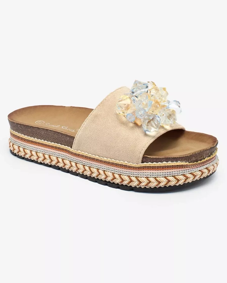 - Skaistas sieviešu biksītes no eko zamšādas ar kristāliem. Eko ādas zolīte. Biezāka zole rotāta ar a'la pledveida materiālu. Tās lieliski papildinās vasaras stilu!