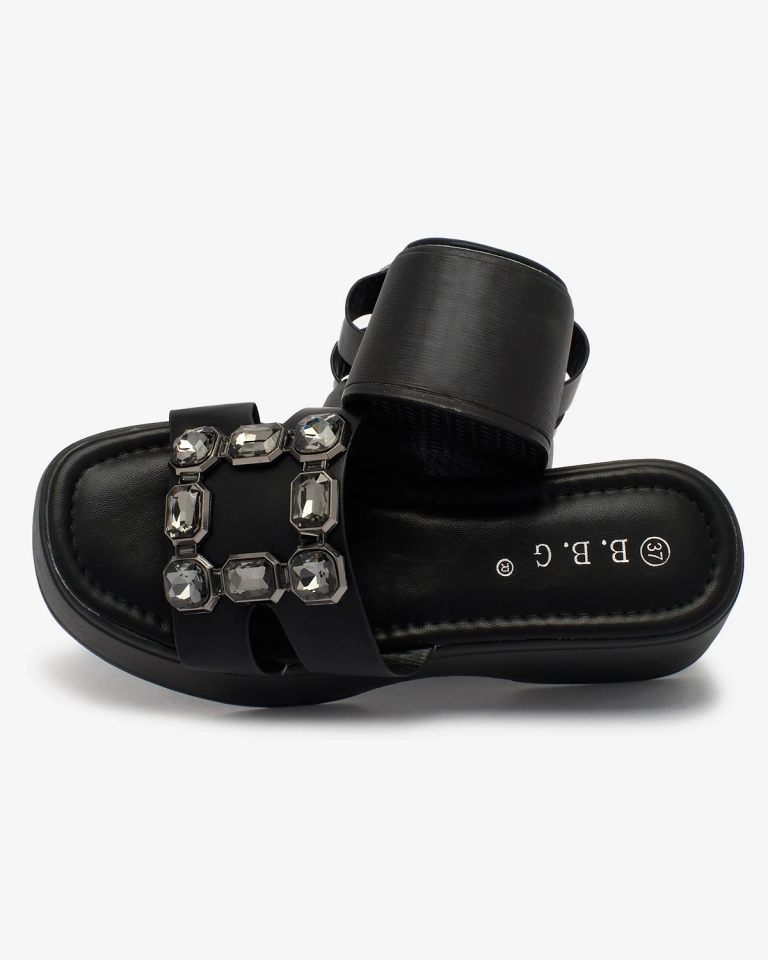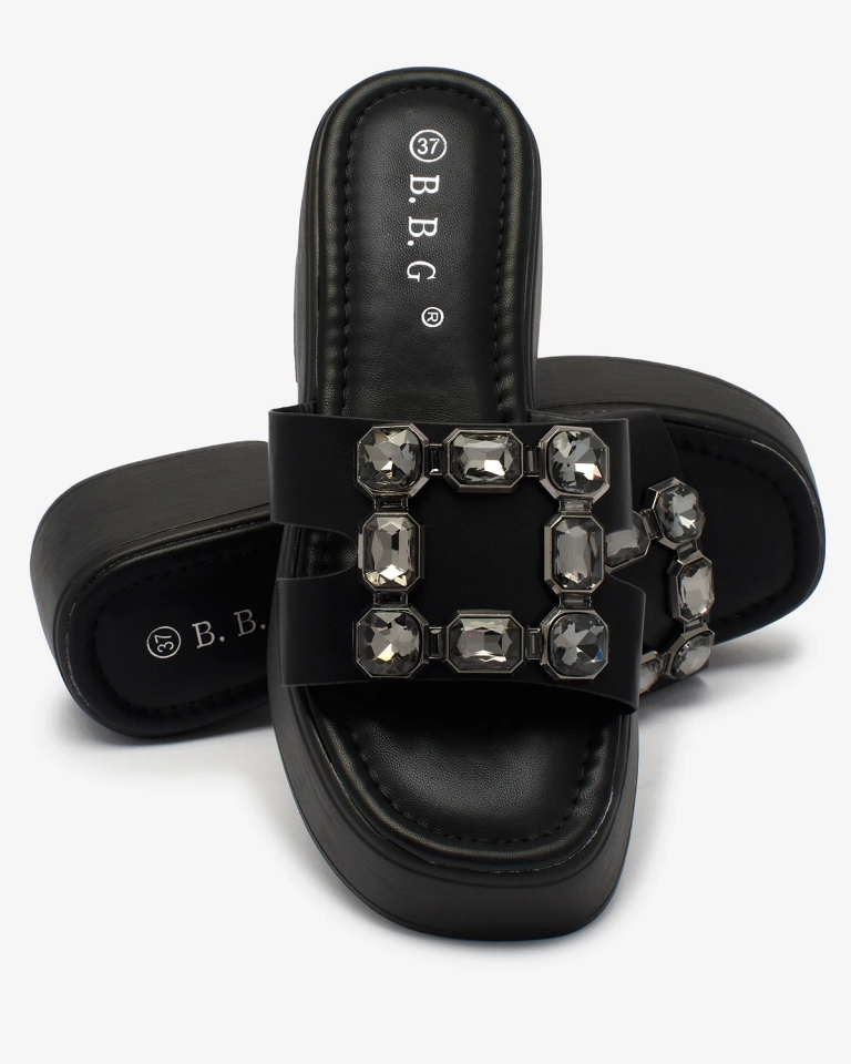- Gaumīgas sieviešu biksītes uz viendabīgas zoles. Pāris ir pilnībā izgatavots no ekoloģiskas ādas o rotātas ar lieliem kristāliem. Super papildinājums jūsu vasaras ikdienas tērpiem!