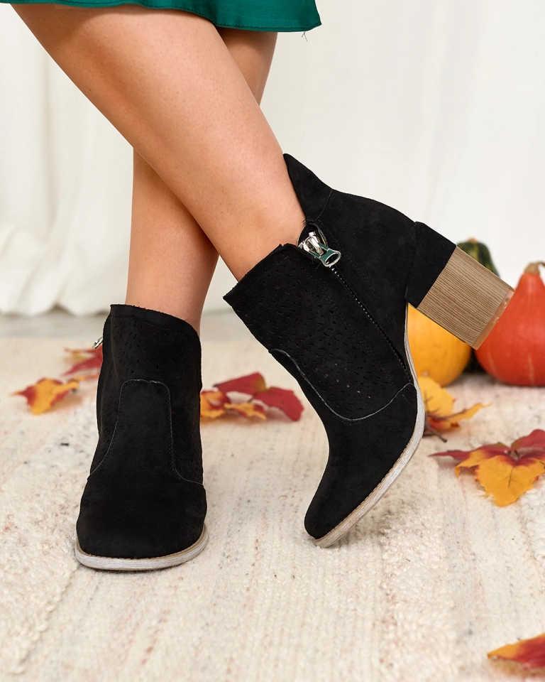 - Sieviešu zābaki ar zemu pēcpunktu un izgriezumu sānos, izgatavoti no eko zamšādas. Centrs ir oderēts ar eko ādu, modelis ir ar rāvējslēdzēju un pabeigts ar ažūru rotājumu. MELNI SIEVIEŠU NESILTINĀTIE ZĀBAKI NEAFLA