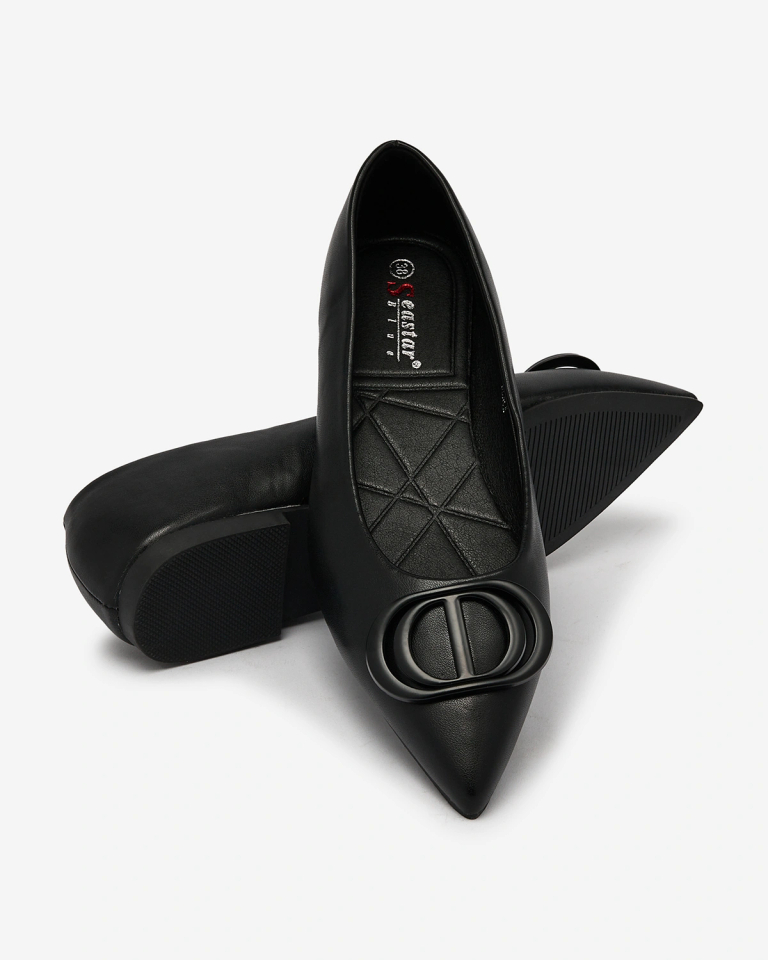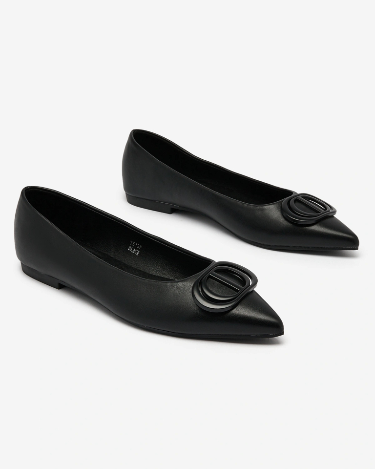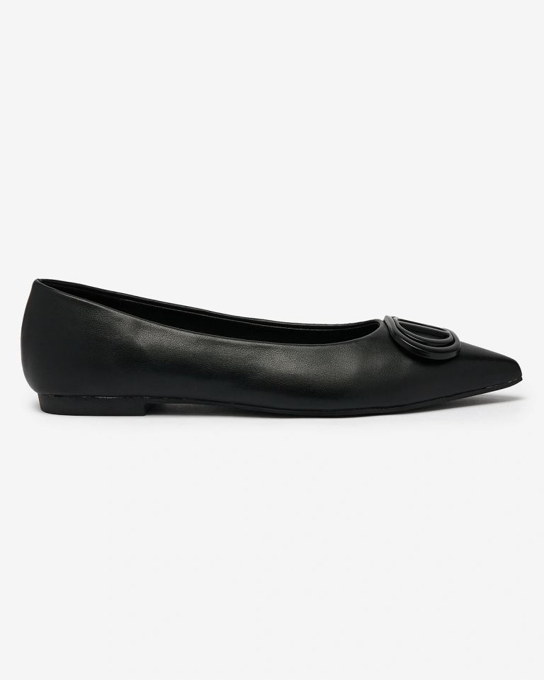 Royalfashion Melnas sieviešu balerīnas ar smailiem pirkstgaliem un rotājumu uz deguna Manixy