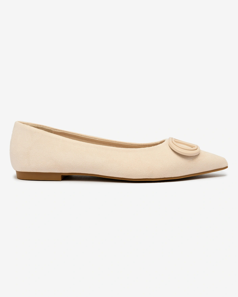 Royalfashion Bēšas krāsas sieviešu balerīnas ar smailiem pirkstgaliem un rotājumu uz deguna Tidita