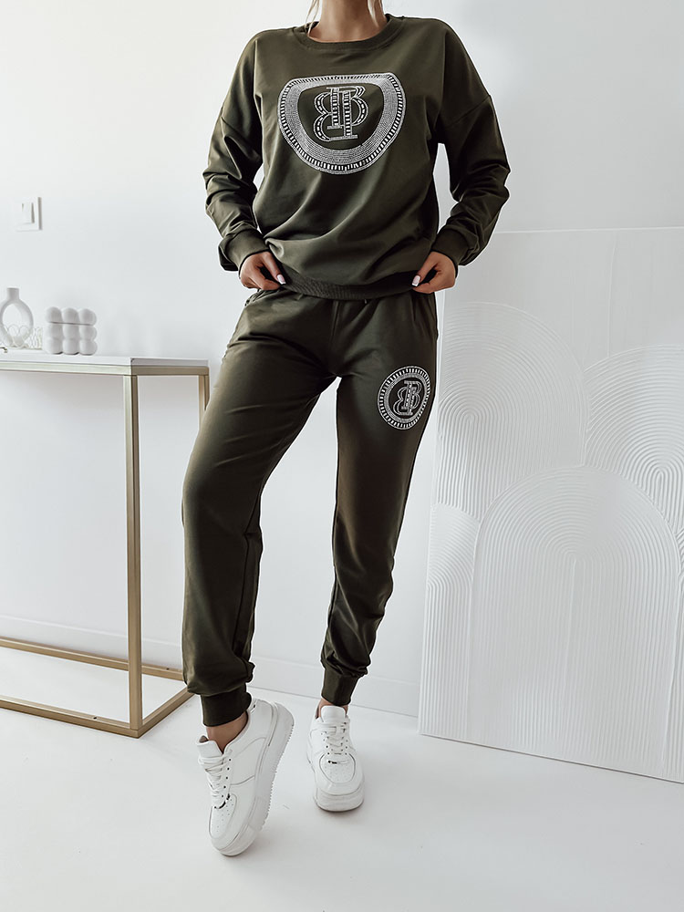 Royalfashion Tumši zaļš džempera komplekts sievietēm ar cirkoniem