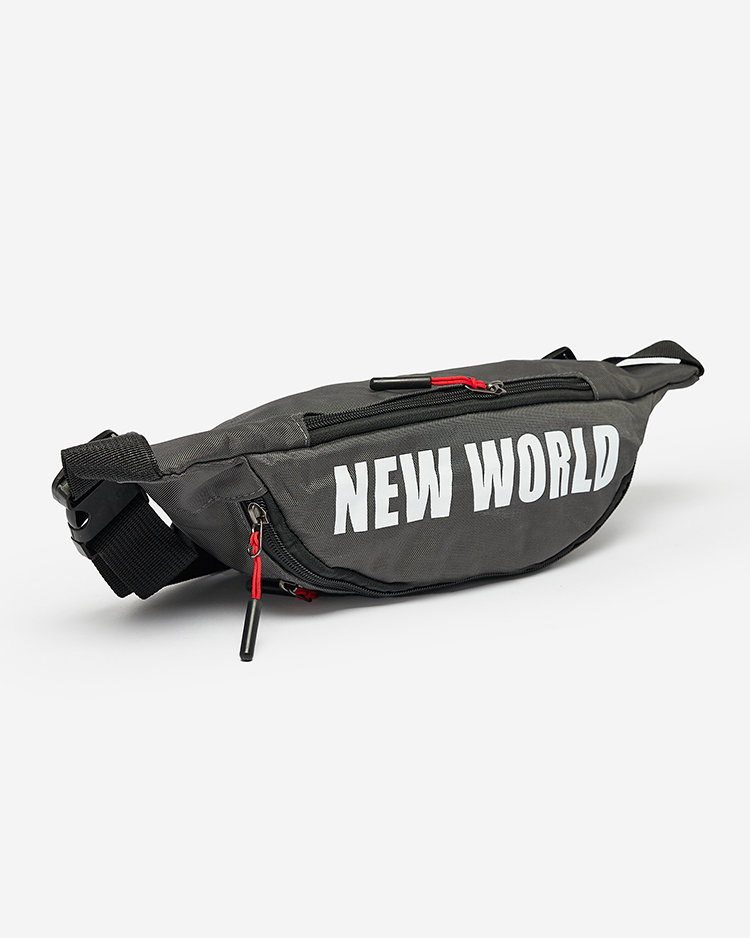 - Vīriešu niere no auduma, rotāta ar uzrakstu. Tai ir viens nodalījums, divas ārējās kabatas un regulējama siksna. Stilīgs papildinājums sporta tērpiem!