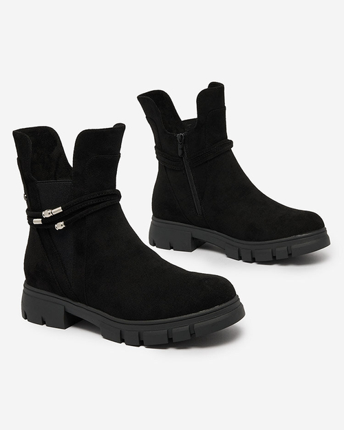 Royalfashion Melni sieviešu zābaki ar dekoratīvu siksniņu Dafflo