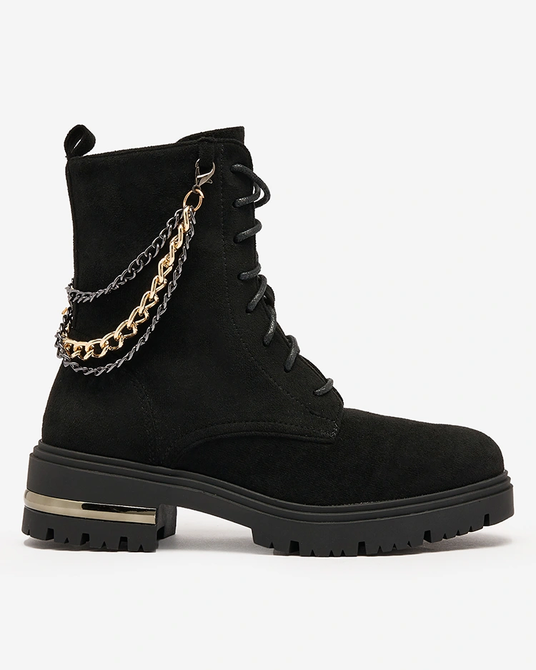 Royalfashion Melni eko zamšādas sieviešu bagger zābaki ar ķēdīti Azoldi