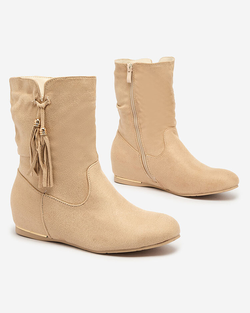 Royalfashion Bēšas krāsas eko- zamšādas zābaki ar paslēptu enkuru Lovely