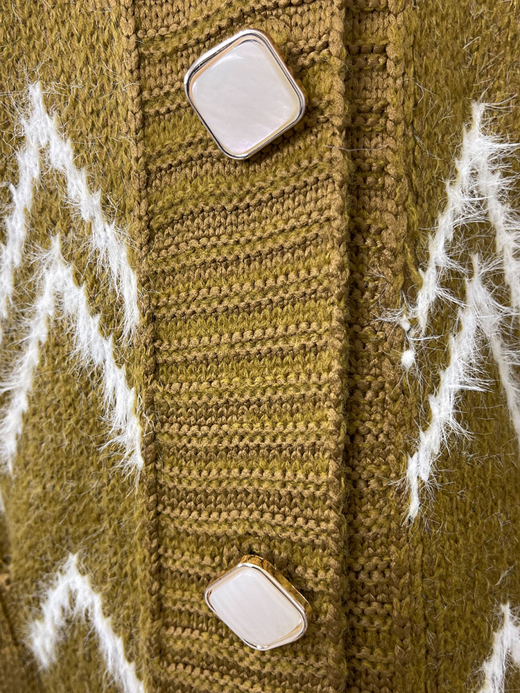 - Skaists sieviešu džemperis ar gultas pārklāju, izgatavots no rakstaina, trikotāžas auduma. Džemperis ar pogām un divām kabatām. Must have jūsu garderobē, lai papildinātu rudens stilu!