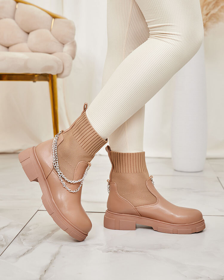 Gaiši brūni sieviešu zābaki ar augšējo daļu a'la zeķe Foldaf- Footwear