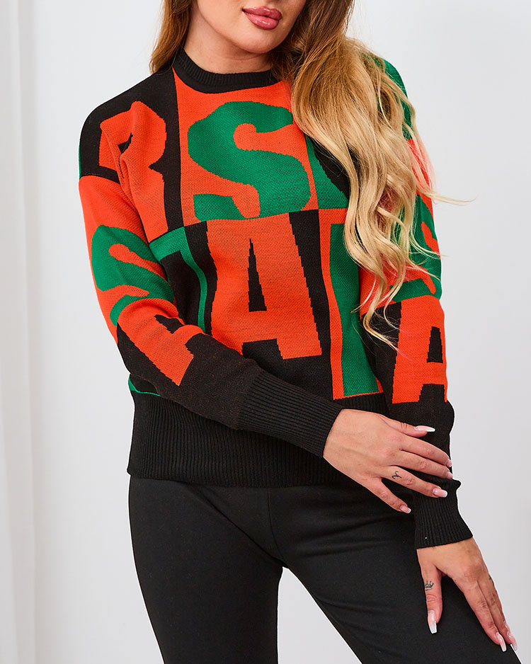 Royalfashion Brūns un zils sieviešu džemperis ar burtiem