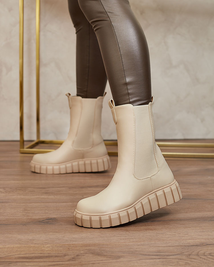 Royalfashion Sieviešu augstpapēžu augstpapēžu zābaki ecru krāsā Elicane