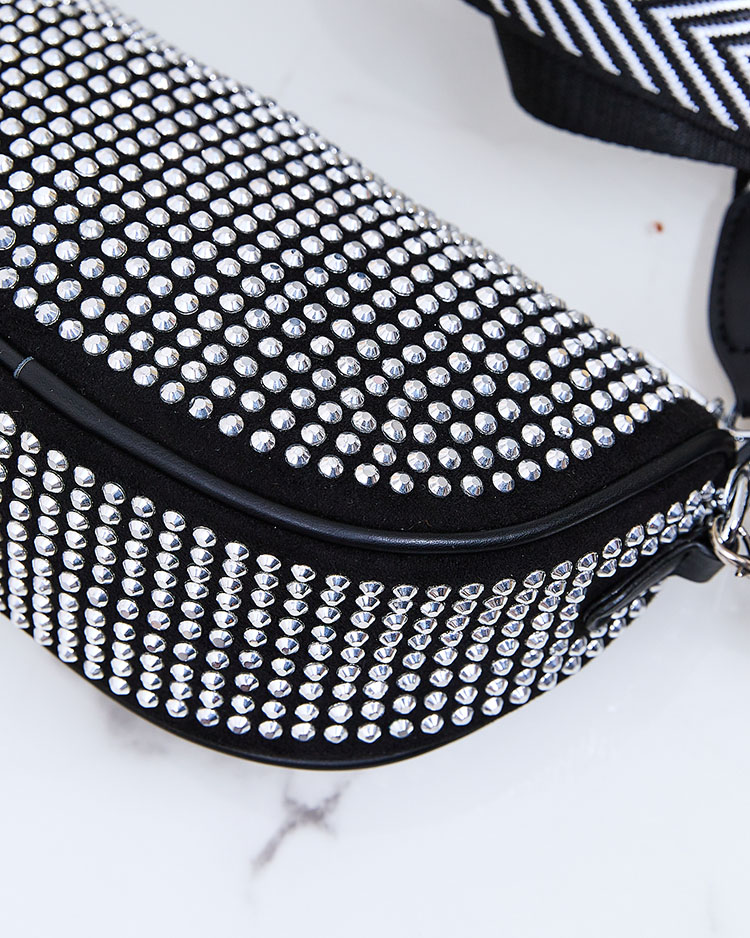 Royalfashion Melna sieviešu rokassomiņa ar sudraba mirdzošiem akmentiņiem
