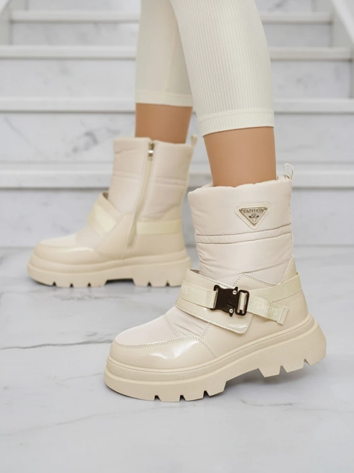 - Sieviešu sniega zābaki ar a'la cerata materiāla un eko lakādas virsu. Izolēta iekšpuse mākslīgās kažokādas veidā, apavi aiztaisāmi ar rāvējslēdzēju un Velcro. Ideāli piemērotas aukstākai sezonai!
