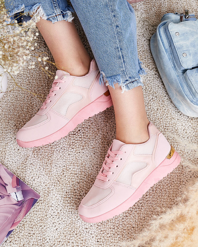 • Sieviešu sporta apavi no matētas eko ādas, auduma zolīte. Turklāt apavus rotā metāliski ielaidumi aizmugurē. Lieliski piemērotas aktīvi pavadītam laikam!