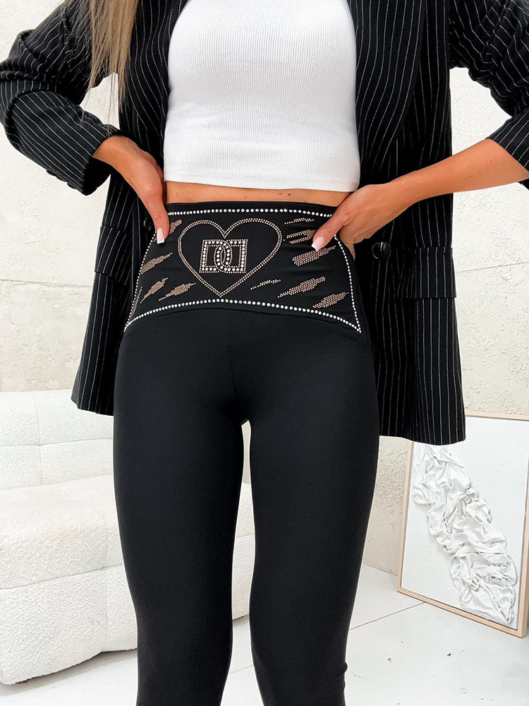 - Stilīgi legingi no elastīga auduma. Plaša elastīga josta, rotāta ar cirkoniem, nodrošina valkāšanas komfortu. Ideāli piemērotas aktīvai dienai!