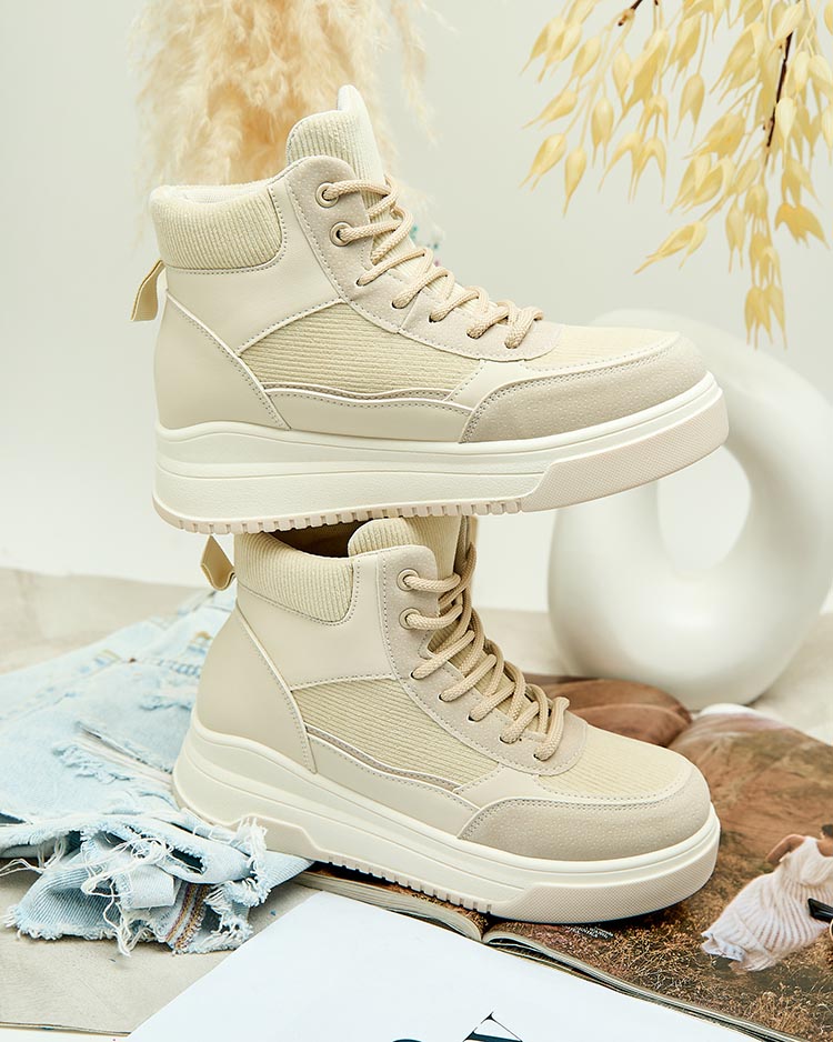 - Sieviešu kedas uz biezākas zoles - lieliska stila un komforta kombinācija. Apavi izgatavoti no eko ādas un eko zamšādas kombinācijas. Šņorējams modelis, ir auduma zolīte. Laba izvēle katrai dienai!
