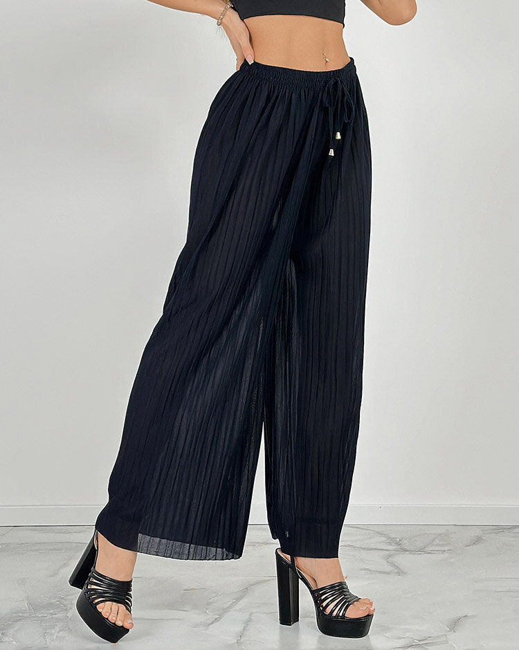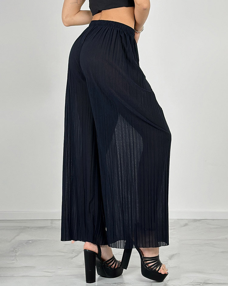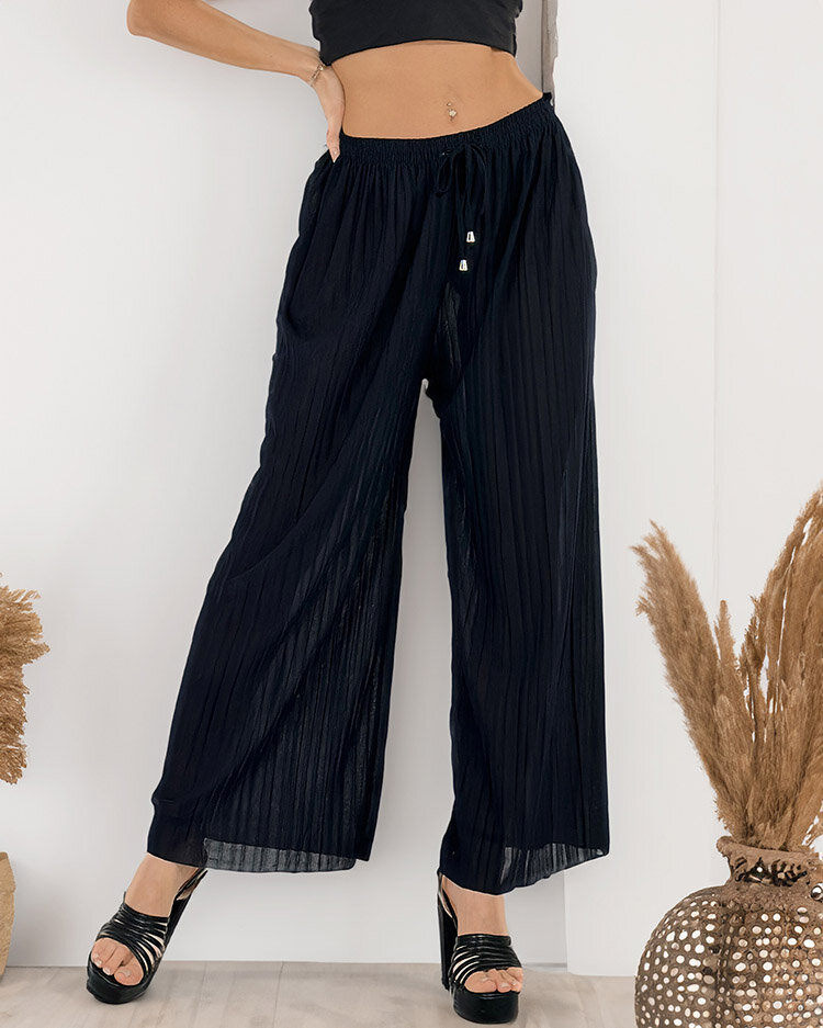 - Sensacionālas plisētās platās bikses no viegla auduma, modelim ir elastīga josta un saites viduklī. Obligāti jābūt jūsu garderobē! PIEZĪME: mērījumu precizitāte (+/-) 1 cm.