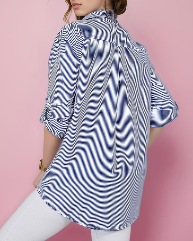 • Sensacionāls sieviešu svītrains krekls ar garām piedurknēm. Modelis ar apkakli, aizpogājams ar pogām. Obligāti jābūt ikvienas sievietes garderobē!