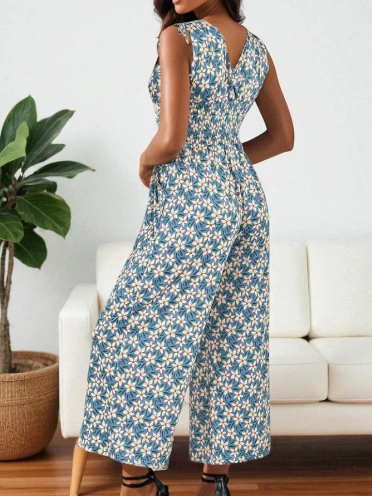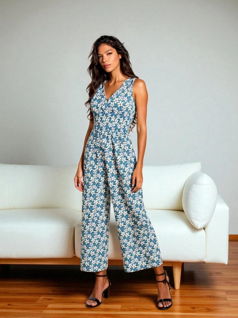 • Modes sieviešu kombinezons bez siksniņām, taisnām un platām kājām. Izgriezums un sašaurināta jostasvieta. Modelim ir dekoratīva apdruka. Lielisks pamats katrai dienai!