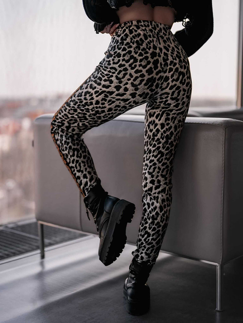 - Stilīgi legingi no elastīga auduma. Plaša elastīga josta nodrošina valkāšanas komfortu. Viss rotāts ar dzīvnieku apdruku un cirkoniem. Lieliski piemērotas stilīgu tērpu veidošanai!