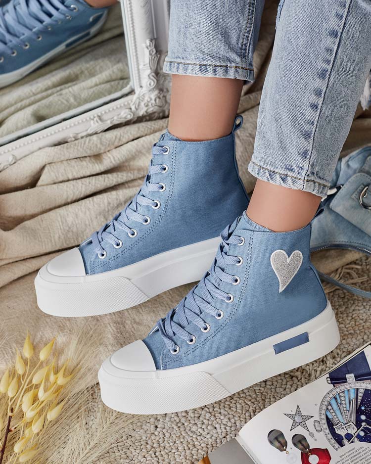 - Stilīgas sieviešu sporta kedas no auduma materiāla, ar sirds formas rotājumu. Modelis uz ērtas platformas. Augšdaļa ir ar mežģīnēm. Lieliski piemērotas ikdienas tērpu veidošanai!