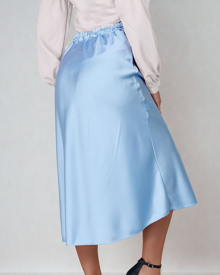 - Bezgalīgi sieviešu midi svārki. Modelim ir elastīga josta, kas lieliski izceļ vidukli. Izgatavots no patīkama a'la satīna materiāla. Šie svārki būs lielisks akcents jūsu ikdienas tēlam!