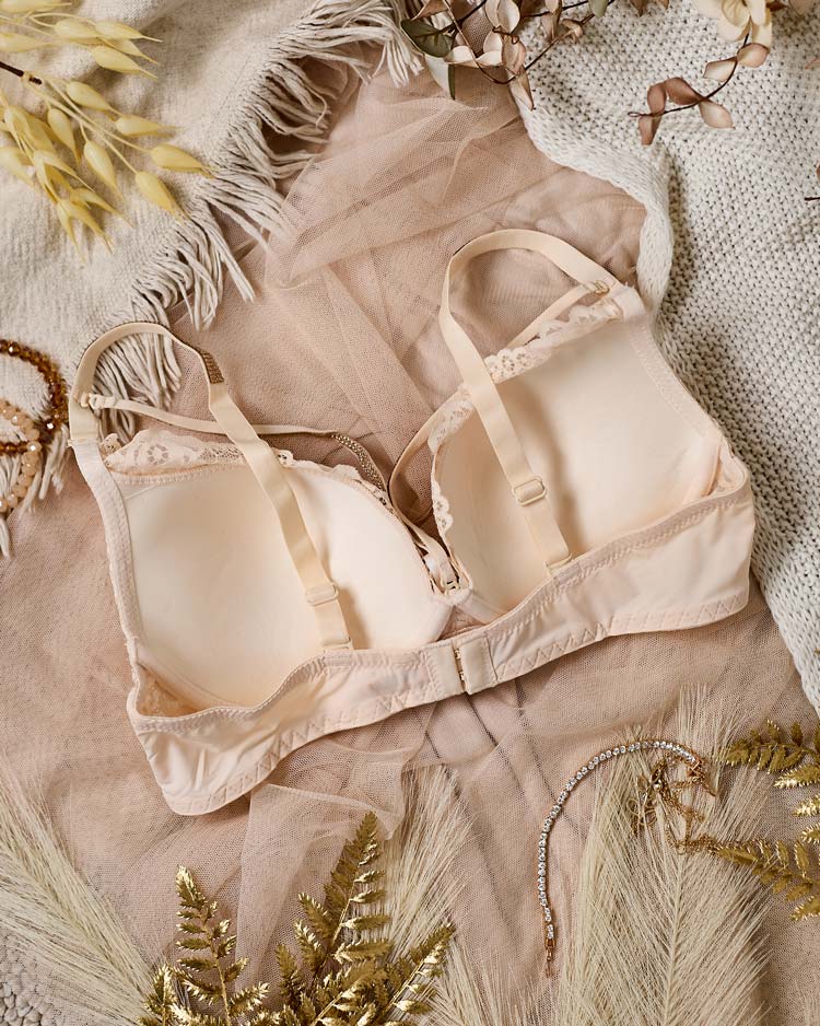 - Izcils sieviešu krūšturis ar polsterējumu. Izsmalcināta apdare ar maigām mežģīnēm palielina tā eleganci. Izstrādājums aizmugurē ir aizdares ar āķīšiem. Siksniņas ir noņemamas un regulējamas. Modelim ir dekoratīvas siksniņas ar cirkoniem.