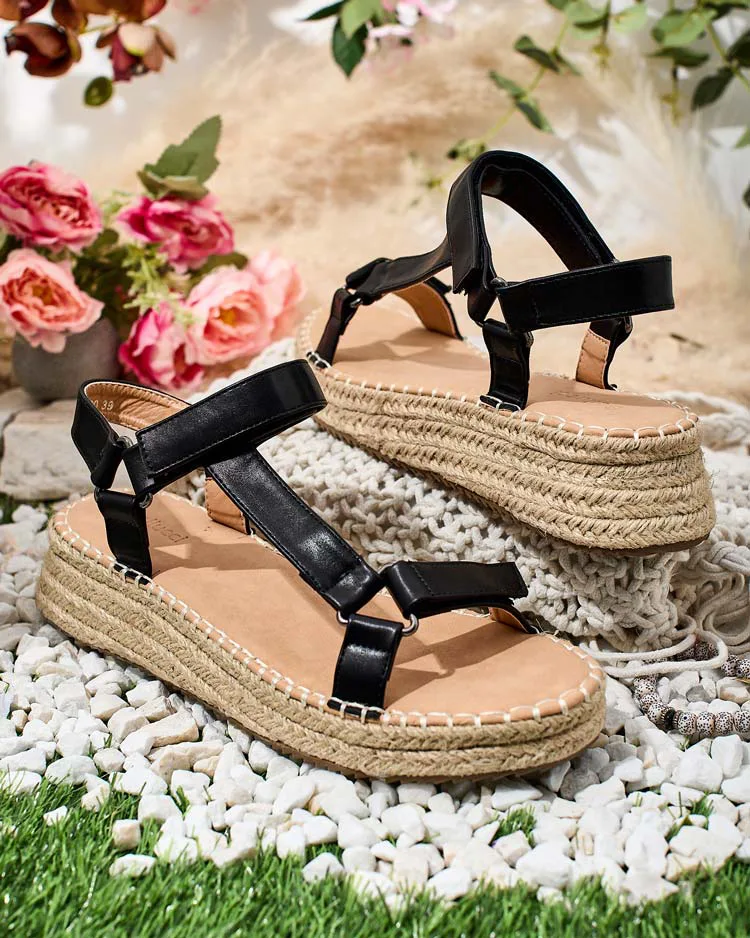 • Sieviešu sandales uz zema papēža. Tās ir izgatavotas no eko ādas, zole ir no eko ādas. Apavi ir aiztaisāmi ar Velcro. Lieliski piemērotas modernu vasaras tērpu veidošanai!