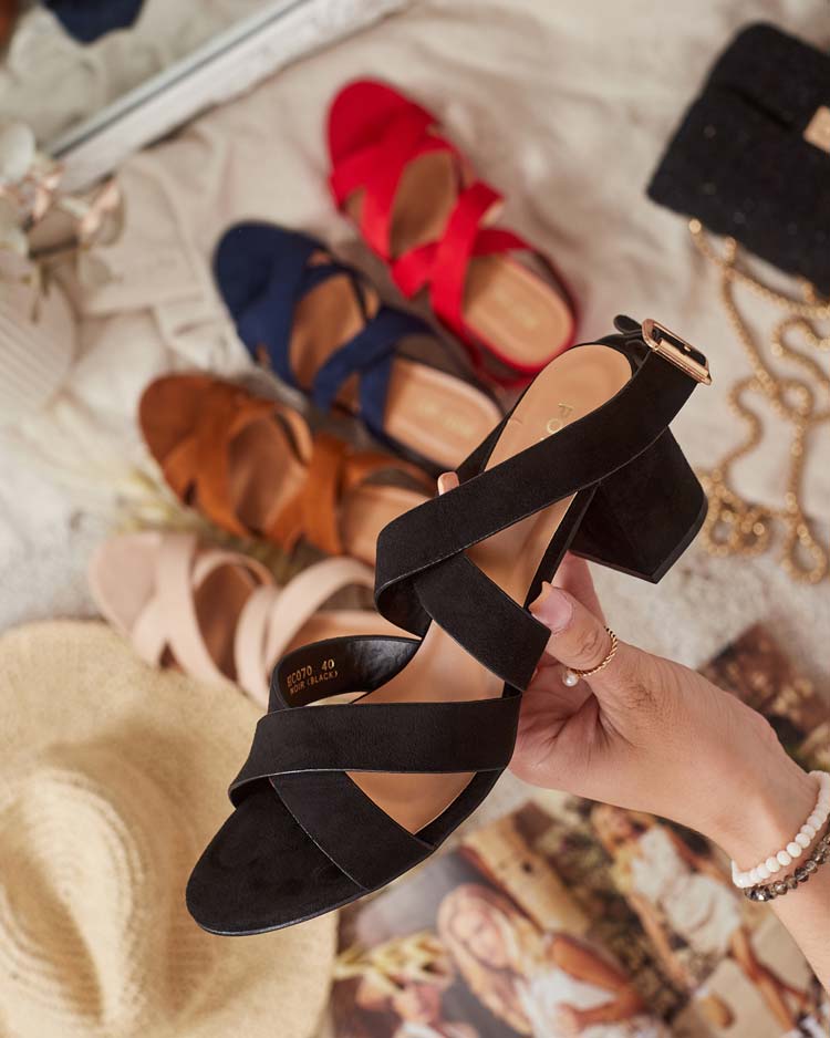 • Unikālas zemas stiletto sandales no eko zamšādas un eko ādas zolītes. Tām ir dekoratīva pītas sprādzes aizdare. Stila un komforta kombinācija. Stīpiņa piešķir smalku eleganci, un sprādzes dēļ tās ir viegli uzvilkt!
