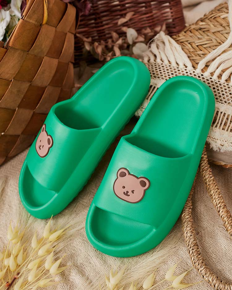 - Lieliskas sieviešu gumijas čības uz plakanas zoles, siksniņa rotāta ar mīļu lācīti. Lieliska izvēle brīvdienām!