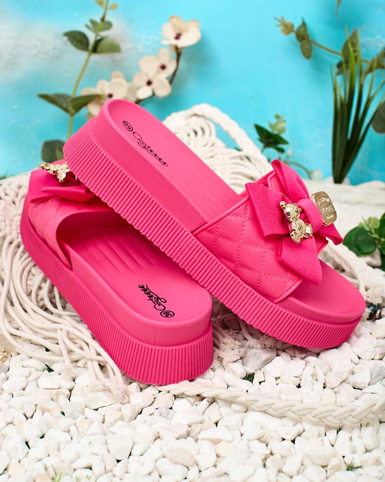 - Lieliskas dūnotas dībeļi platformas dībeļi sievietēm. Izgatavotas no eko ādas un gumijas zoli. To augšdaļā ir dekoratīvs lociņš. Lieliska izvēle brīvdienām!