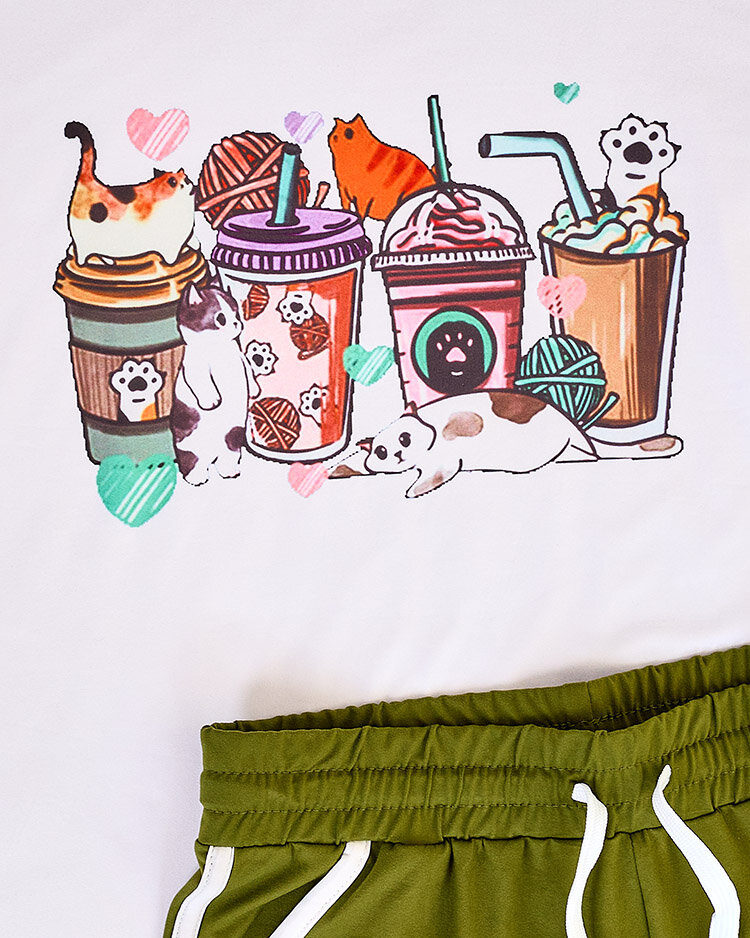 - Sieviešu komplekts no patīkama materiāla. Modelim ir dekoratīva apdruka. Blūze ar īsām piedurknēm un īsi šorti ar elastīgu jostu. Sajūtiet vasaru šajā brīnišķīgajā komplektā!