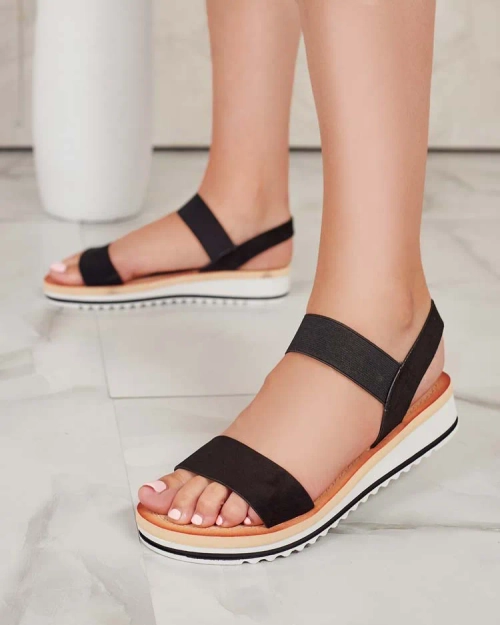 - Sieviešu sandales ar plakanu zoli - ideāli piemērotas karstām vasaras dienām. Siksniņas ir izgatavotas no organiskās zamšādas, bet zolīte ir no patīkama putuplasta. Priekšpusi rotā elegantas svītras, bet ap potīti siksniņa.