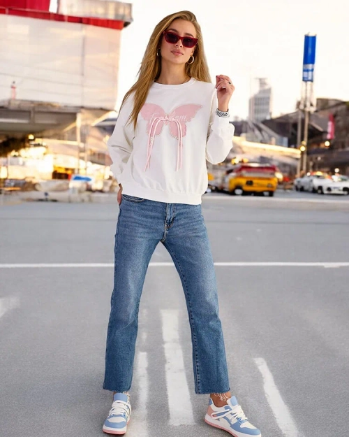 • Piešķiriet savam apģērbam izsmalcinātību ar mūsu plānāko džemperi, ko rotā tauriņu raksts. Ieliekams virs galvas, ar apaļu izgriezumu un garām piedurknēm. Ideāli piemērots katrai dienai, kad vēlaties justies ikdienišķi, bet stilīgi!