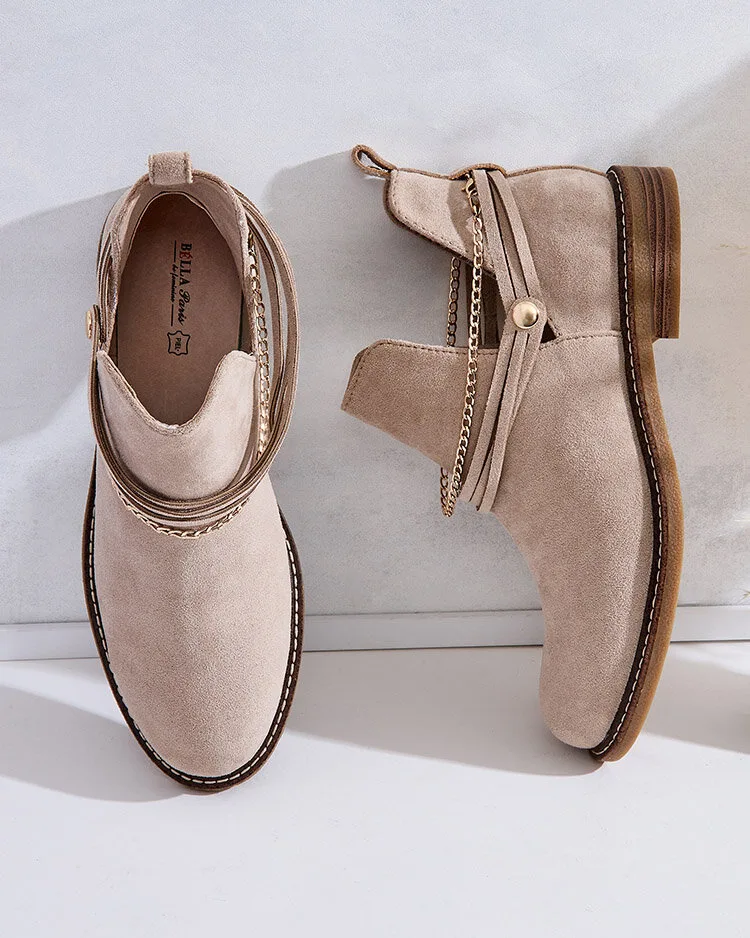 - Stilīgi sieviešu ekovizelīna zābaki ar dabīgās ādas zoli ir ideāli piemēroti aukstākām dienām. Uzvelkams modelis ar dekoratīvām ķēdītēm uz augšdaļas. Apavi uz plakana papēža un ar apaļu pirkstgalu. Super papildinājums jūsu ikdienas tērpiem!