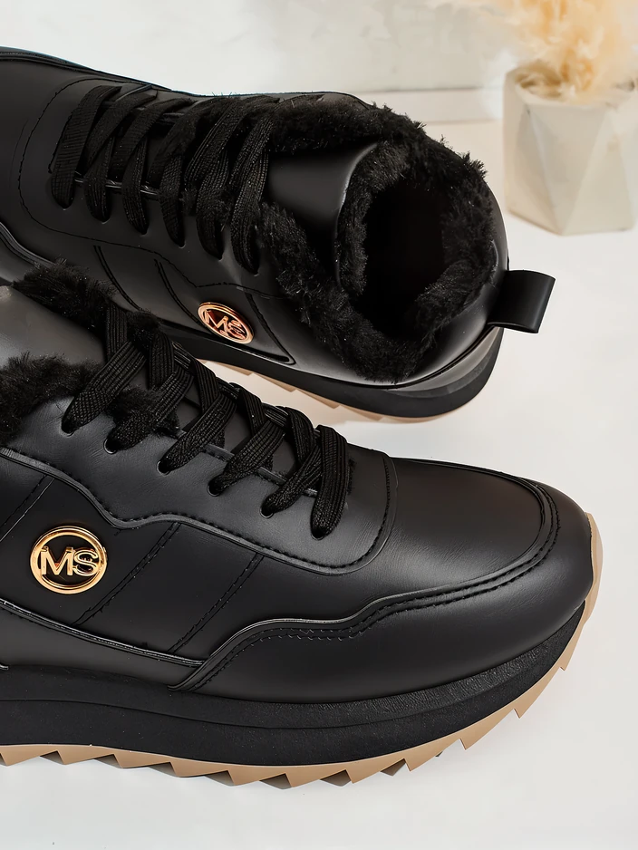 - Sporta kedas sievietēm uz biezākas zoles. Mežģīņu augšdaļa, izgatavota no ekoloģiskas ādas. Iekšpuse pilnībā siltināta ar kažokādu. Ideāli piemērotas sportiskam apģērbam!