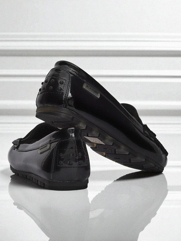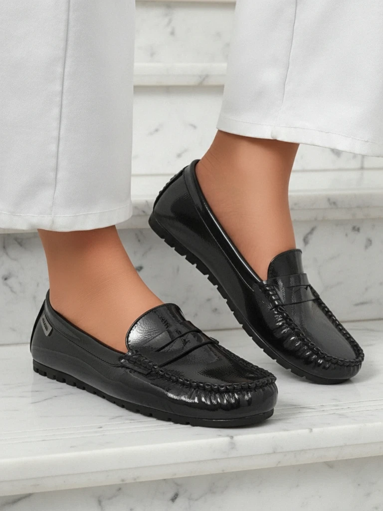 Mokasine për femra Cyra Nero prej lëkure ekologjike të lyer, stil klasik italian