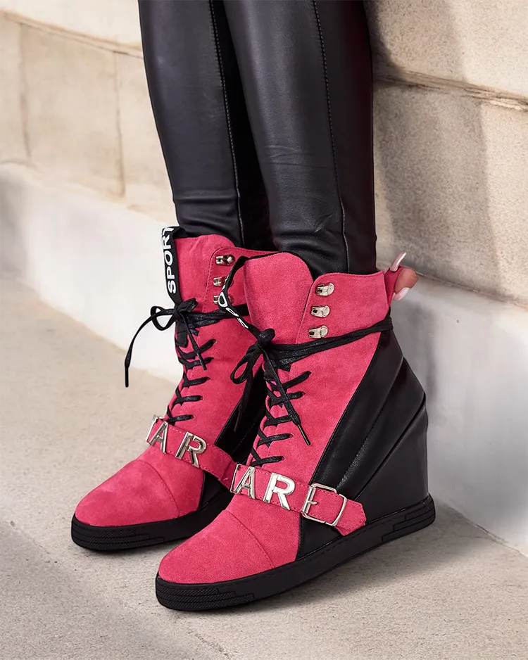 - Sportiski sieviešu zābaki uz papēžiem, kas izgatavoti no eko ādas un eko zamšādas kombinācijas. Saišu apavi ar dekoratīvu rotājumu uz apavu augšdaļas, iekšpusē - auduma zolīte.