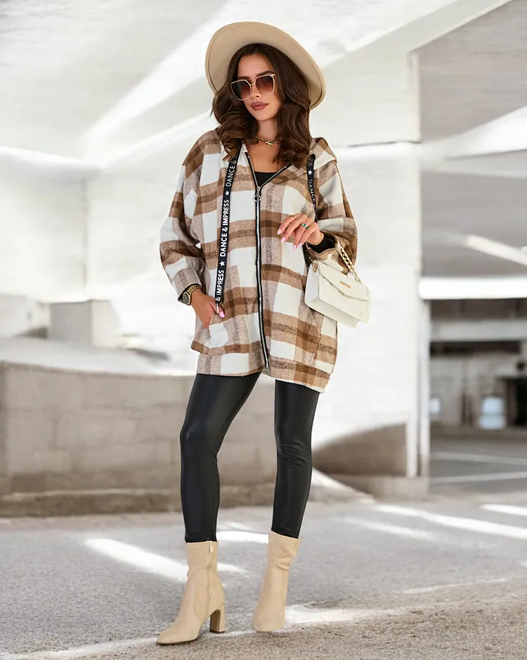 • Stilīgi sieviešu krekla tipa mēteļi ar kapuci. Liela izmēra piegriezuma mētelim ir garas piedurknes, rāvējslēdzēja aizdare un 2 kabatas. Lieliski piemērots rudenim!