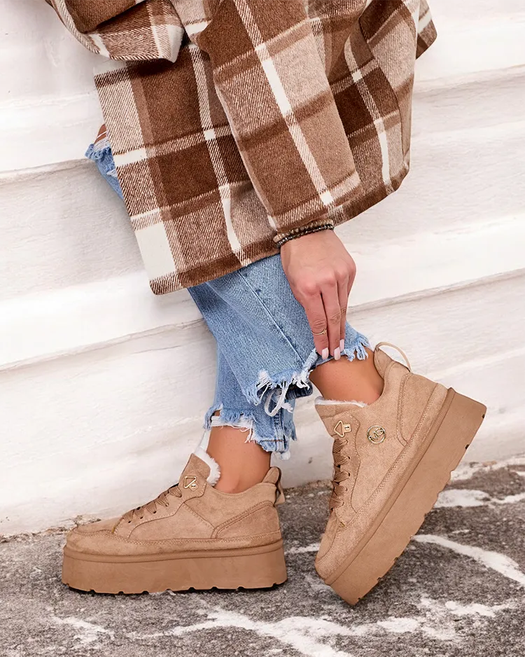 - Sieviešu sporta apavi uz platformas. Mežģīņu augšdaļa, izgatavota no ekoloģiskas ādas. Iekšpuse pilnībā siltināta ar kažokādu. Ideāli piemērotas sportiskam apģērbam!