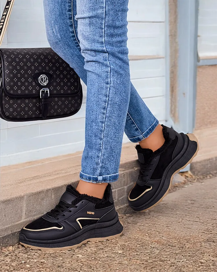 - Sieviešu siltinātās kedas sporta apavi uz biezākas zoles. Mežģīņu augšdaļa no zamšādas ar eko ādas elementiem. Mīksts kažoks iekšpusē. Super papildinājums jūsu ziemas ikdienas tērpiem!
