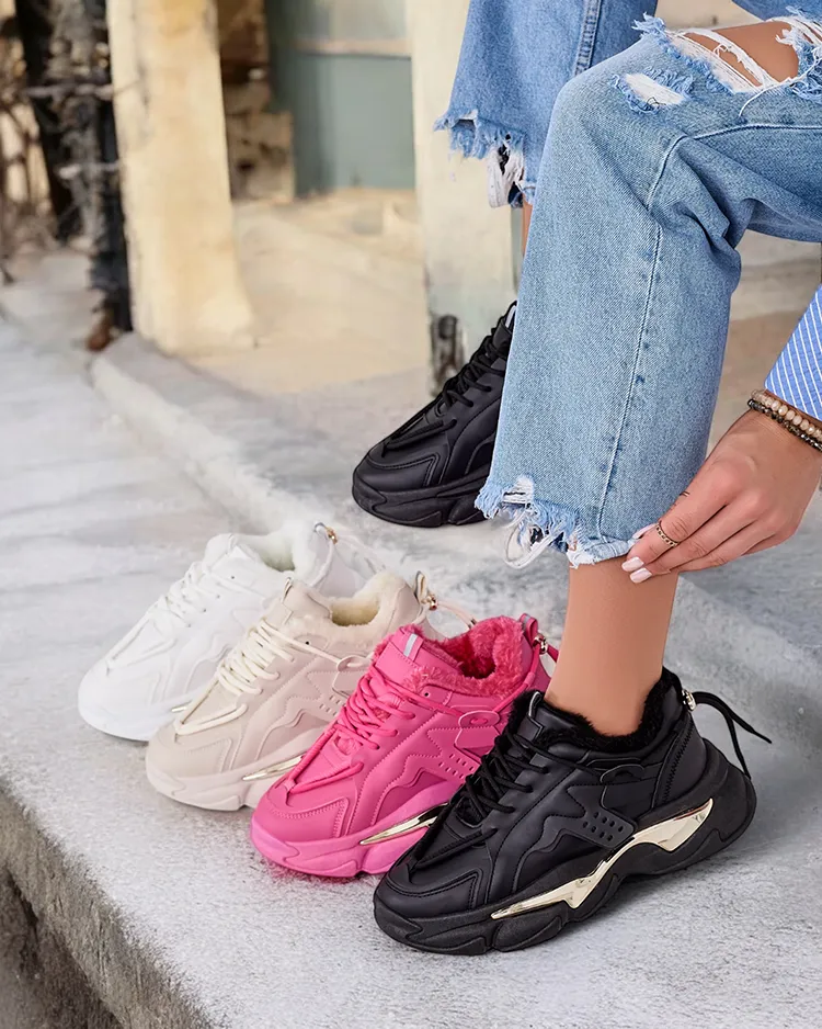 - Sieviešu sporta kedas uz biezākas zoles. Mežģīņu augšdaļa, izgatavota no ekoloģiskas ādas. Iekšpuse pilnībā siltināta ar kažokādu. Ideāli piemērotas sporta tērpiem!