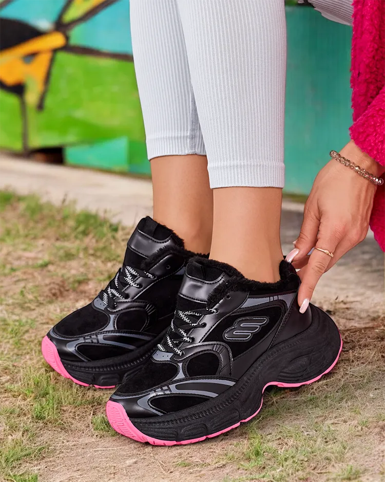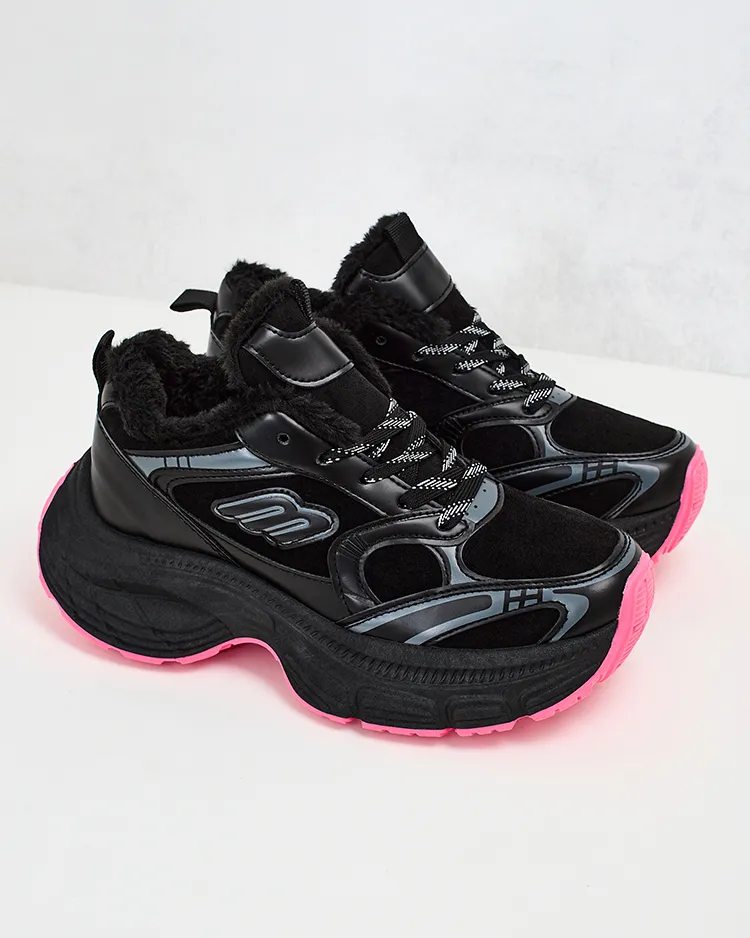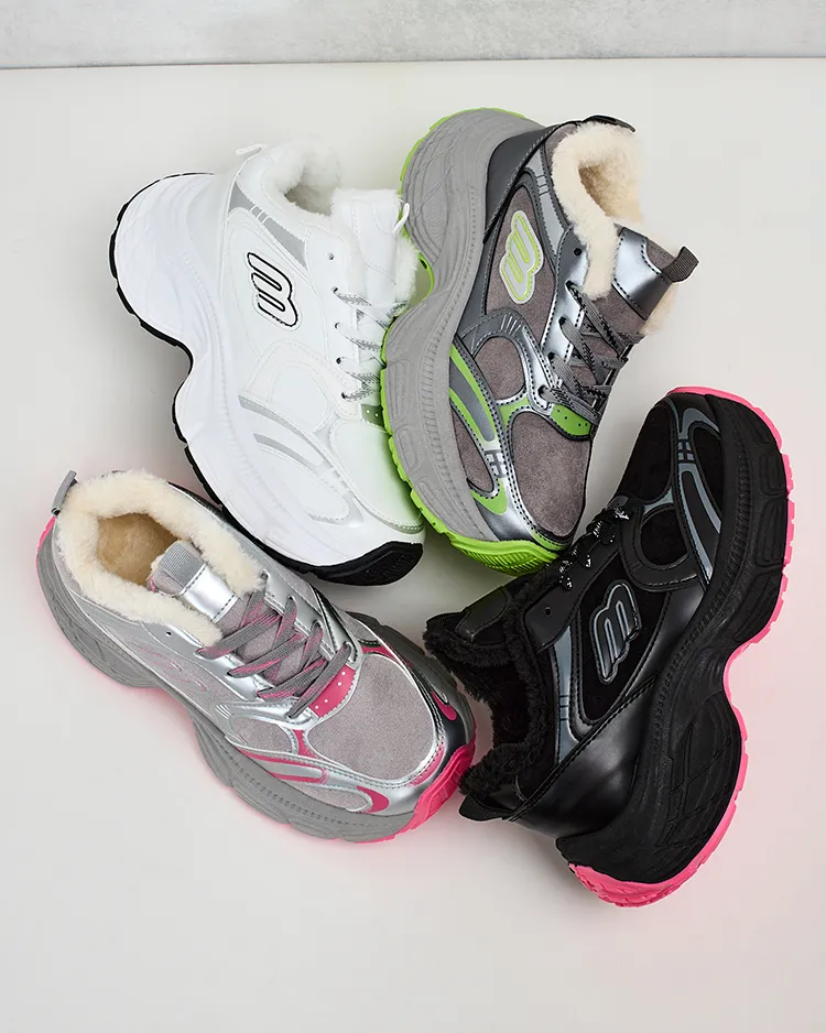 - Sieviešu siltinātie sporta apavi ar platformu. Mežģīņu tipa apavu augšdaļa izgatavota no eko ādas un eko zamšādas kombinācijas. Mīksts kažoks iekšpusē. Super papildinājums jūsu ziemas ikdienas tērpiem!