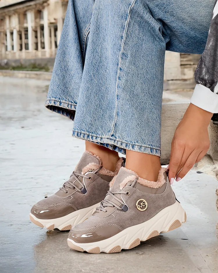- Sieviešu siltinātas kedas sporta apavi uz biezākas zoles. Mežģīņu virsma no organiskās zamšādas. Mīksts kažoks iekšpusē. Super papildinājums jūsu ziemas ikdienas tērpiem!