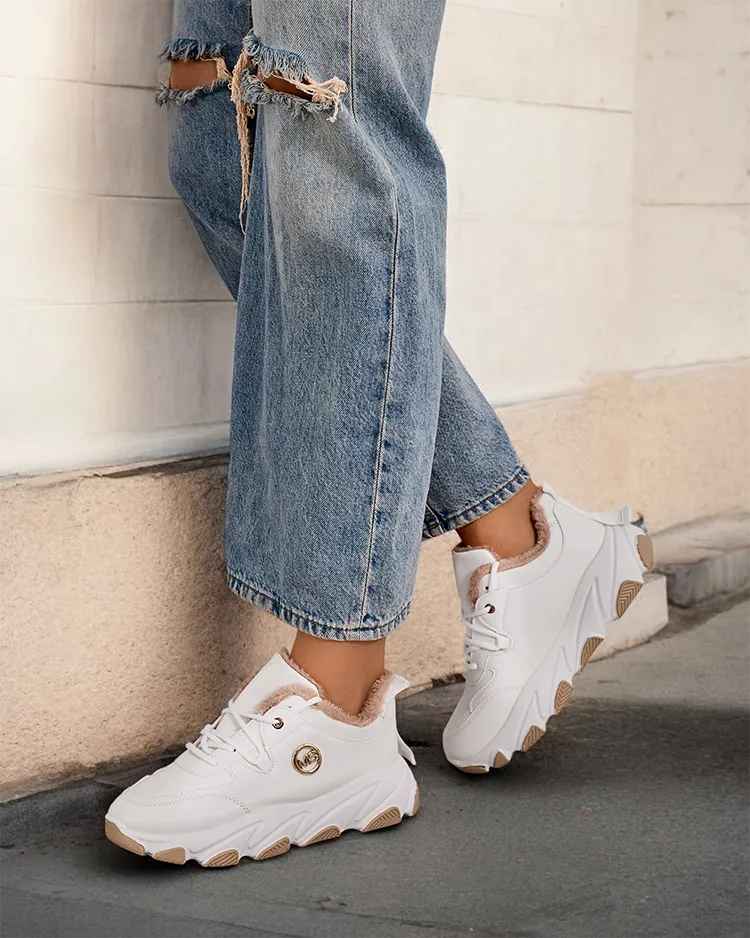 - Sieviešu siltinātās kedas sporta apavi uz biezākas zoles. Mežģīņu virsma no ekoloģiskas ādas. Mīksts kažoks iekšpusē. Super papildinājums jūsu ziemas ikdienas tērpiem!